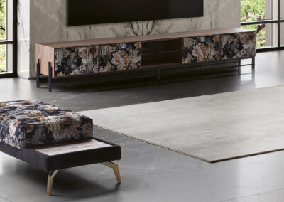 This stool is ideal for strategic placement where its wooden section can be utilized as an embedded table within the upholstery, while the cushioned area provides a comfortable seating option.