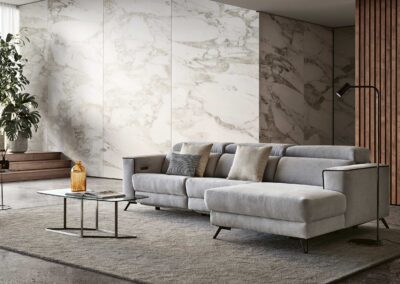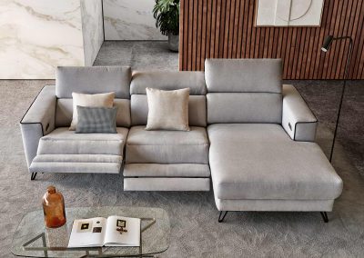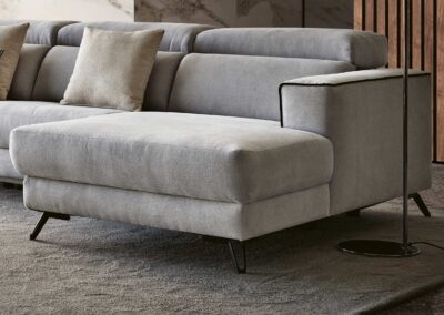 The Royal Modular Sofa System prioritizes comfort with its reclining backrest and relax seating. Equipped with individual motors to control both the backrest and the seat, it offers a customized lounging experience. The delicate feet and piping details add a subtle touch of elegance to its design.