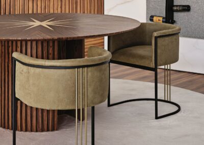 Esta mesa combina força com elegância, tornando-se num ponto focal impressionante em qualquer área de jantar.
